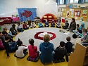 Unser Leseclub hat am 20.11.15 am bundesweiten Vorlesetag teilgenommen. Als Vorleserin konnten wir die Sängerin und Klangpädagogin Carola Bandari gewinnen, die für 3 verschiedene Klassen aus unterschiedlichen Altersstufen eine selbstverfasste Klanggeschichte vorlas.