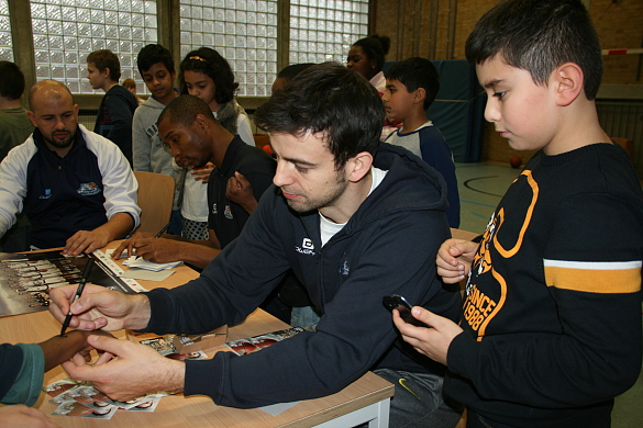 Eine Woche lang stand der Sportunterricht an unserer Schule ganz im Zeichen des Basketballs! Unter dem Motto „Spielen wie die Basketballprofis“ hatte jede Klasse Sportunterricht beim Profi-Jugendcoach und Gründer der Basketballakademie Bremen Süd Dejan Stojanovski. Durch sein fantastisches Engagement schaffte es Dejan alle Schüler_innen für Basketball zu begeistern und wichtige Grundlagen zu vermitteln. Die Woche endete mit einem Abschlussevent in unserer Turnhalle. Alle Kinder fieberten diesem Tag entgegen, da auch 2 Profispieler der Eisbären zu Besuch kamen: Lorenzo Williams und Ex-Nationalspieler Philip Zwiener. Sie dribbelten mit den Kindern und zeigten ihre Wurfkünste von ganz weit draußen, hinter der 3-Punkte-Linie. Im Anschluss beantworteten sie geduldig alle Fragen, die die Schüler_innen in den Klassen vorbereitet hatten und gaben zum Abschluss geduldig Autogrammme.