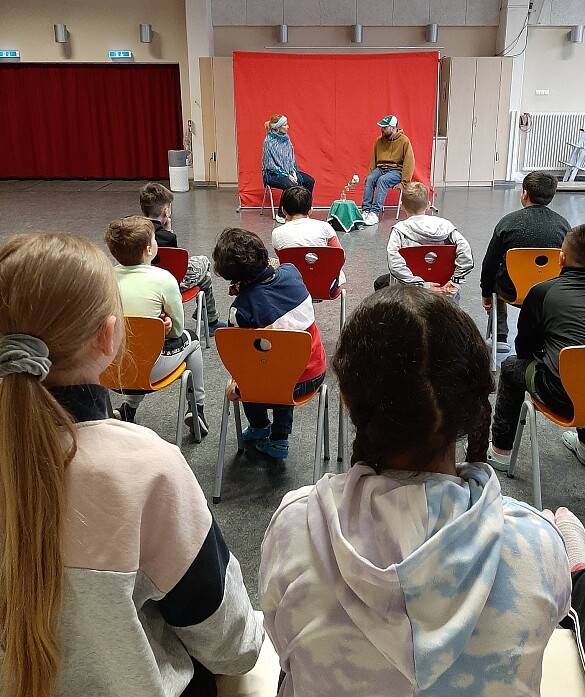 Die Schauspieler Sissi Zängerle und Thomas Hoppe zeigen die interaktiven Spielszenen an 3 Vormittagen.